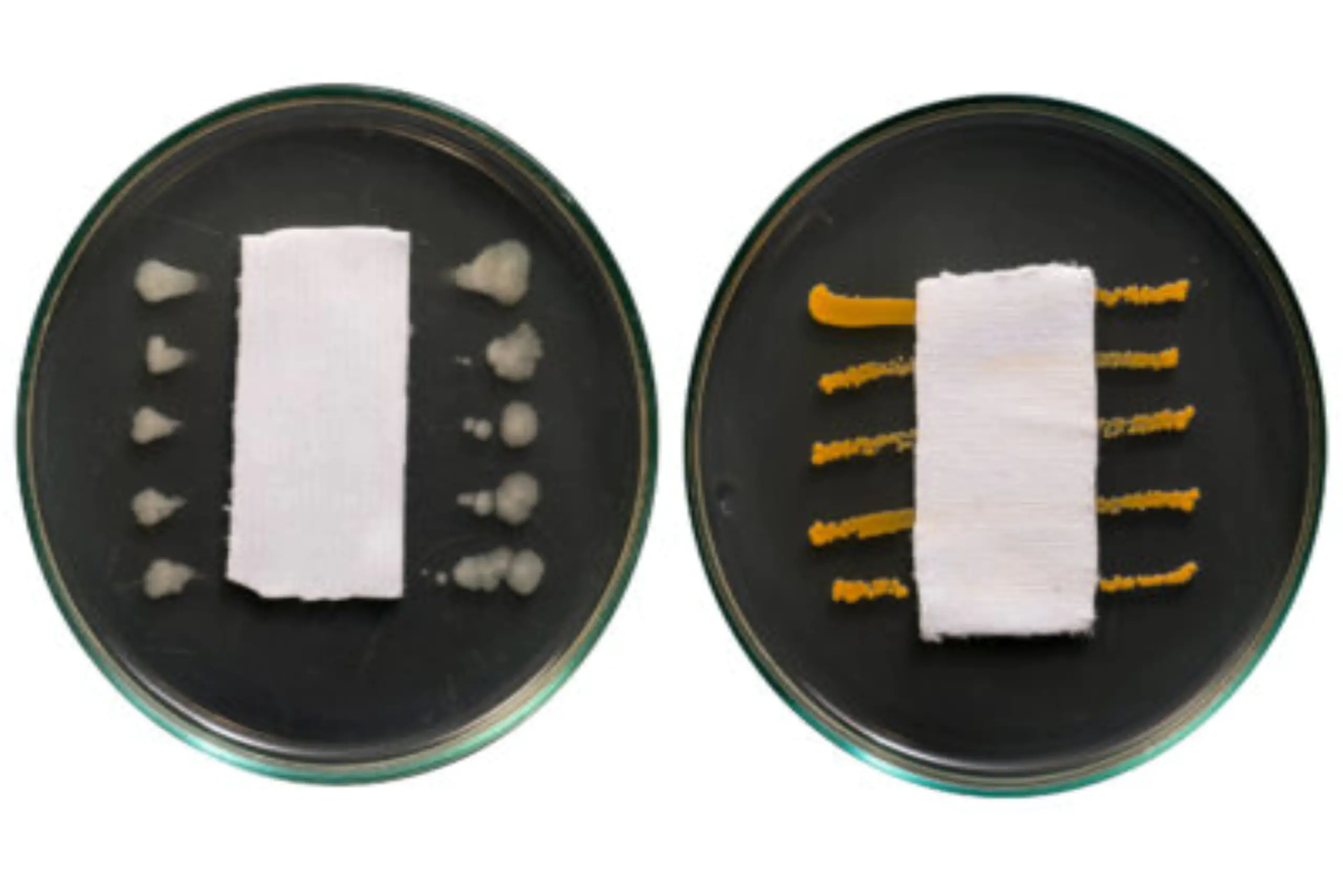 Expression of Results: Zone of Inhibition in mm, no growth under the fabric sample in the contact area